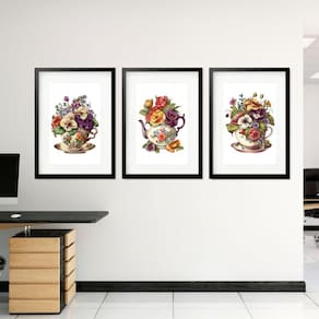 Kit 3 quadros grandes chá e flores 60x48cm Cor: moldura branca Informações do produto tire todas as suas dúvidas no descritivo abaixo: decoração para quarto, sala, cozinha, escritório, área gourmet e muito mais. Chega de paredes vazias medidas - cada peça tem 60x48cm . Material do papel - papel fotográfico brilhante de altíssima resolução acabamento - todos os quadros são acompanhados de vidro para proteção da imagem. - moldura em madeira maciça na cor preta ou branca conforme produto escolhido e pendurador. - paspatur branco com 7cm de largura - os quadros são embalados de forma segura com plástico bolha com camada dupla de acordo com o tamanho dos quadros. - de 3 meses. Meu quadro chegou. Como posso fixá-lo Você precisa apenas de um martelo e um prego, pois os quadros já vão acompanhados de penduradores. Esta é a forma mais indicada. Como posso limpar meu quadro A limpeza é feita como um móvel comum da sua casa. Apenas um pano seco ou espanador são suficientes para tal Ean: 7908991742530