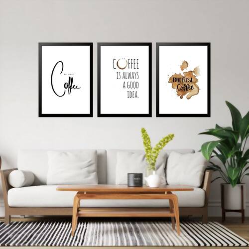 Kit 3 Quadros Grandes Coffee Is Always a Good Idea 60x48cm - Cor: Moldura Preta