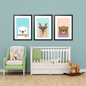 Kit 3 quadros grandes infantil filhotes 60x48cm Cor: moldura branca Informações do produto tire todas as suas dúvidas no descritivo abaixo: decoração para quarto, sala, cozinha, escritório, área gourmet e muito mais. Chega de paredes vazias medidas - cada peça tem 60x48cm . Material do papel - papel fotográfico brilhante de altíssima resolução acabamento - todos os quadros são acompanhados de vidro para proteção da imagem. - moldura em madeira maciça na cor preta ou branca conforme produto escolhido e pendurador. - paspatur branco com 7cm de largura - os quadros são embalados de forma segura com plástico bolha com camada dupla de acordo com o tamanho dos quadros. - de 3 meses. Meu quadro chegou. Como posso fixá-lo Você precisa apenas de um martelo e um prego, pois os quadros já vão acompanhados de penduradores. Esta é a forma mais indicada. Como posso limpar meu quadro A limpeza é feita como um móvel comum da sua casa. Apenas um pano seco ou espanador são suficientes para tal