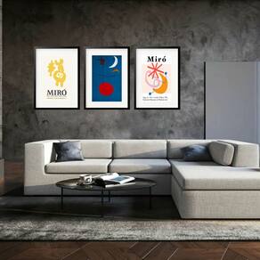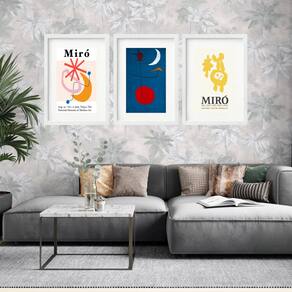 Kit 3 Quadros Grandes Miró Collection I 60x48cm - Cor: Moldura Branca