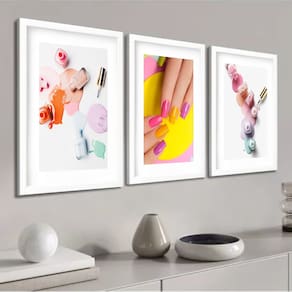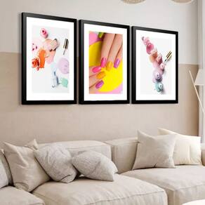 Kit 3 Quadros Grandes Nail Designer 60x48cm - Cor: Moldura Preta