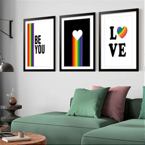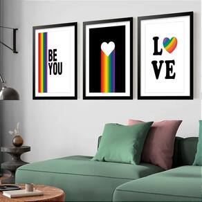 Kit 3 Quadros Grandes Pride Be You 60x48cm - Cor: Moldura Preta