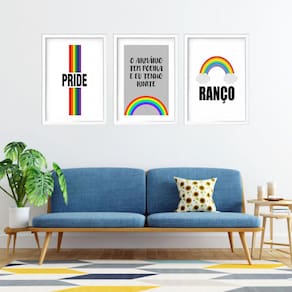 Kit 3 quadros grandes pride rainbow 60x48cm Cor: moldura preta Informações do produto tire todas as suas dúvidas no descritivo abaixo: decoração para quarto, sala, cozinha, escritório, área gourmet e muito mais. Chega de paredes vazias medidas - cada peça tem 60x48cm . Material do papel - papel fotográfico brilhante de altíssima resolução acabamento - todos os quadros são acompanhados de vidro para proteção da imagem. - moldura em madeira maciça na cor preta ou branca conforme produto escolhido e pendurador. - paspatur branco com 7cm de largura - os quadros são embalados de forma segura com plástico bolha com camada dupla de acordo com o tamanho dos quadros. - de 3 meses. Meu quadro chegou. Como posso fixá-lo Você precisa apenas de um martelo e um prego, pois os quadros já vão acompanhados de penduradores. Esta é a forma mais indicada. Como posso limpar meu quadro A limpeza é feita como um móvel comum da sua casa. Apenas um pano seco ou espanador são suficientes para tal Marca: Não Informado