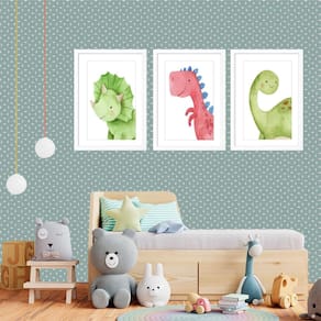 Kit 3 quadros grandes quarto infantil baby dino 60x48cm Cor: moldura preta Informações do produto tire todas as suas dúvidas no descritivo abaixo: decoração para quarto, sala, cozinha, escritório, área gourmet e muito mais. Chega de paredes vazias medidas - cada peça tem 60x48cm . Material do papel - papel fotográfico brilhante de altíssima resolução acabamento - todos os quadros são acompanhados de vidro para proteção da imagem. - moldura em madeira maciça na cor preta ou branca conforme produto escolhido e pendurador. - paspatur branco com 7cm de largura - os quadros são embalados de forma segura com plástico bolha com camada dupla de acordo com o tamanho dos quadros. - de 3 meses. Meu quadro chegou. Como posso fixá-lo Você precisa apenas de um martelo e um prego, pois os quadros já vão acompanhados de penduradores. Esta é a forma mais indicada. Como posso limpar meu quadro A limpeza é feita como um móvel comum da sua casa. Apenas um pano seco ou espanador são suficientes para tal