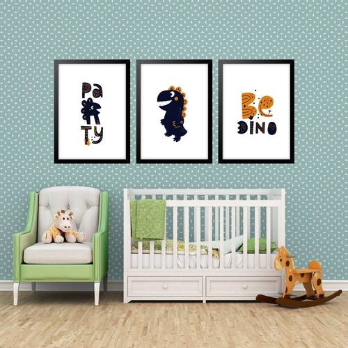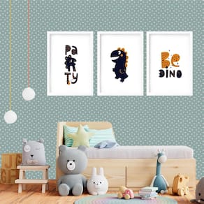 Kit 3 quadros grandes quarto infantil be dino party 60x48cm Cor: moldura preta Informações do produto tire todas as suas dúvidas no descritivo abaixo: decoração para quarto, sala, cozinha, escritório, área gourmet e muito mais. Chega de paredes vazias medidas - cada peça tem 60x48cm . Material do papel - papel fotográfico brilhante de altíssima resolução acabamento - todos os quadros são acompanhados de vidro para proteção da imagem. - moldura em madeira maciça na cor preta ou branca conforme produto escolhido e pendurador. - paspatur branco com 7cm de largura - os quadros são embalados de forma segura com plástico bolha com camada dupla de acordo com o tamanho dos quadros. - de 3 meses. Meu quadro chegou. Como posso fixá-lo Você precisa apenas de um martelo e um prego, pois os quadros já vão acompanhados de penduradores. Esta é a forma mais indicada. Como posso limpar meu quadro A limpeza é feita como um móvel comum da sua casa. Apenas um pano seco ou espanador são suficientes para tal