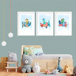 Kit 3 quadros grandes quarto infantil dinos avião 60x48cm Cor: moldura preta Informações do produto tire todas as suas dúvidas no descritivo abaixo: decoração para quarto, sala, cozinha, escritório, área gourmet e muito mais. Chega de paredes vazias medidas - cada peça tem 60x48cm . Material do papel - papel fotográfico brilhante de altíssima resolução acabamento - todos os quadros são acompanhados de vidro para proteção da imagem. - moldura em madeira maciça na cor preta ou branca conforme produto escolhido e pendurador. - paspatur branco com 7cm de largura - os quadros são embalados de forma segura com plástico bolha com camada dupla de acordo com o tamanho dos quadros. - de 3 meses. Meu quadro chegou. Como posso fixá-lo Você precisa apenas de um martelo e um prego, pois os quadros já vão acompanhados de penduradores. Esta é a forma mais indicada. Como posso limpar meu quadro A limpeza é feita como um móvel comum da sua casa. Apenas um pano seco ou espanador são suficientes para tal