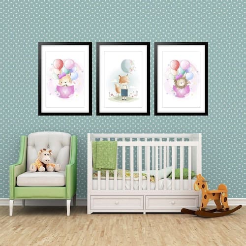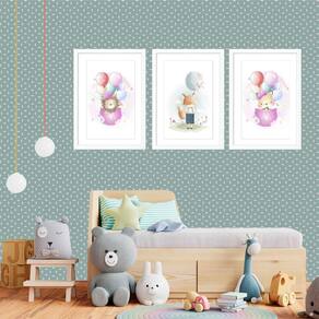 Kit 3 quadros grandes quarto infantil filhotes balões 60x48cm Cor: moldura branca Informações do produto tire todas as suas dúvidas no descritivo abaixo: decoração para quarto, sala, cozinha, escritório, área gourmet e muito mais. Chega de paredes vazias medidas - cada peça tem 60x48cm . Material do papel - papel fotográfico brilhante de altíssima resolução acabamento - todos os quadros são acompanhados de vidro para proteção da imagem. - moldura em madeira maciça na cor preta ou branca conforme produto escolhido e pendurador. - paspatur branco com 7cm de largura - os quadros são embalados de forma segura com plástico bolha com camada dupla de acordo com o tamanho dos quadros. - de 3 meses. Meu quadro chegou. Como posso fixá-lo Você precisa apenas de um martelo e um prego, pois os quadros já vão acompanhados de penduradores. Esta é a forma mais indicada. Como posso limpar meu quadro A limpeza é feita como um móvel comum da sua casa. Apenas um pano seco ou espanador são suficientes para tal