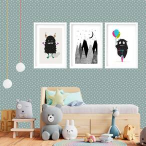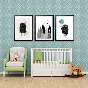 Kit 3 quadros grandes quarto infantil monstrinho 60x48cm Cor: moldura branca Informações do produto tire todas as suas dúvidas no descritivo abaixo: decoração para quarto, sala, cozinha, escritório, área gourmet e muito mais. Chega de paredes vazias medidas - cada peça tem 60x48cm . Material do papel - papel fotográfico brilhante de altíssima resolução acabamento - todos os quadros são acompanhados de vidro para proteção da imagem. - moldura em madeira maciça na cor preta ou branca conforme produto escolhido e pendurador. - paspatur branco com 7cm de largura - os quadros são embalados de forma segura com plástico bolha com camada dupla de acordo com o tamanho dos quadros. - de 3 meses. Meu quadro chegou. Como posso fixá-lo Você precisa apenas de um martelo e um prego, pois os quadros já vão acompanhados de penduradores. Esta é a forma mais indicada. Como posso limpar meu quadro A limpeza é feita como um móvel comum da sua casa. Apenas um pano seco ou espanador são suficientes para tal