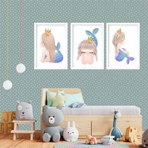 Kit 3 quadros grandes quarto infantil sereinha 60x48cm Cor: moldura branca Informações do produto tire todas as suas dúvidas no descritivo abaixo: decoração para quarto, sala, cozinha, escritório, área gourmet e muito mais. Chega de paredes vazias medidas - cada peça tem 60x48cm . Material do papel - papel fotográfico brilhante de altíssima resolução acabamento - todos os quadros são acompanhados de vidro para proteção da imagem. - moldura em madeira maciça na cor preta ou branca conforme produto escolhido e pendurador. - paspatur branco com 7cm de largura - os quadros são embalados de forma segura com plástico bolha com camada dupla de acordo com o tamanho dos quadros. - de 3 meses. Meu quadro chegou. Como posso fixá-lo Você precisa apenas de um martelo e um prego, pois os quadros já vão acompanhados de penduradores. Esta é a forma mais indicada. Como posso limpar meu quadro A limpeza é feita como um móvel comum da sua casa. Apenas um pano seco ou espanador são suficientes para tal Marca: Não Informado