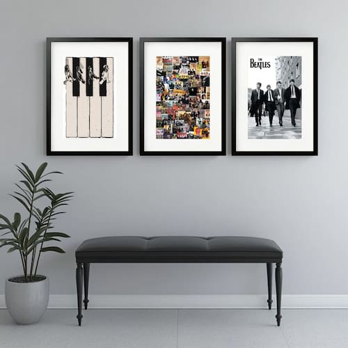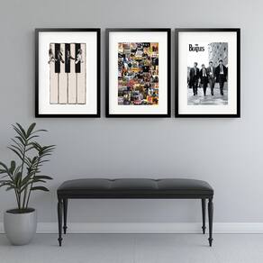 Kit 3 Quadros Grandes The Beatles - 60x48cm - Cor: Moldura Branca