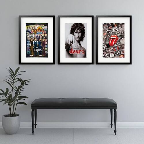 Kit 3 Quadros Grandes The Doors Rolling Stones & The Beatles - 60x48cm - Cor: Moldura Branca