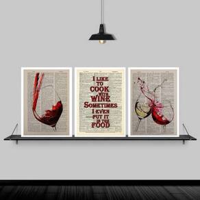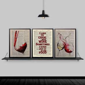 Kit 3 quadros i like to cook with wine 45x34cm Moldura: madeira branca Informações do produto tire todas as suas dúvidas no descritivo abaixo: decoração para quarto, sala, cozinha, escritório, área gourmet e muito mais. Chega de paredes vazias. Medidas - cada peça tem 45x34cm a3 . Material do papel - papel fotográfico brilhante de altíssima resolução acabamento - todos os quadros são acompanhados de uma película de acetato para proteção da imagem. - os quadros são embalados de forma segura com plástico bolha com camada dupla de acordo com o tamanho dos quadros. Garantia - garantia de 3 meses. Meu quadro chegou. Como posso fixá-lo Você precisa apenas de um martelo e um prego, pois os quadros já vão acompanhados de penduradores. Esta é a forma mais indicada. Caso prefira, você pode utilizar uma fita dupla face neste caso, sugerimos de alta qualidade para evitar que descole e seu quadro caia . Como posso limpar meu quadro A limpeza é feita como um móvel comum da sua casa. Apenas um pano seco ou espanador são suficientes para tal