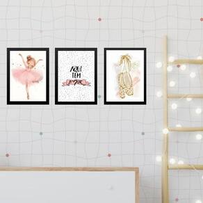 Kit 3 quadros infantis bailarina - amor 33x24cm Moldura: madeira branca Informações do produto tire todas as suas dúvidas no descritivo abaixo: decoração para quarto, sala, cozinha, escritório, área gourmet e muito mais. Chega de paredes vazias medidas - cada peça tem 33x24cm a4 . Material do papel - papel fotográfico brilhante de altíssima resolução acabamento - todos os quadros são acompanhados de uma película de acetato para proteção da imagem. - os quadros são embalados de forma segura com plástico bolha com camada dupla de acordo com o tamanho dos quadros. Garantia - garantia de 3 meses. Meu quadro chegou. Como posso fixá-lo Você precisa apenas de um martelo e um prego, pois os quadros já vão acompanhados de penduradores. Esta é a forma mais indicada. Caso prefira, você pode utilizar uma fita dupla face neste caso, sugerimos de alta qualidade para evitar que descole e seu quadro caia . Como posso limpar meu quadro A limpeza é feita como um móvel comum da sua casa. Apenas um pano seco ou espanador são suficientes para tal