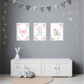 Kit 3 quadros infantis cristãos - borboleta rosa 24x18cm Cor: moldura preta Informações do produto tire todas as suas dúvidas no descritivo abaixo: decoração para quarto, sala, cozinha, escritório, área gourmet e muito mais. Chega de paredes vazias medidas - cada peça tem 24x18cm a5 . Material do papel - papel fotográfico brilhante de altíssima resolução acabamento - todos os quadros são acompanhados de uma película de acetato para proteção da imagem. - os quadros são embalados de forma segura com plástico bolha com camada dupla de acordo com o tamanho dos quadros. - de 3 meses. Meu quadro chegou. Como posso fixá-lo Você precisa apenas de um martelo e um prego, pois os quadros já vão acompanhados de penduradores. Esta é a forma mais indicada. Caso prefira, você pode utilizar uma fita dupla face neste caso, sugerimos de alta qualidade para evitar que descole e seu quadro caia . Como posso limpar meu quadro A limpeza é feita como um móvel comum da sua casa. Apenas um pano seco ou espanador são suficientes para tal Ean: 7908991741182