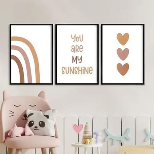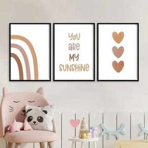 Kit 3 quadros infantis escandinavos - sunshine 33x24cm Cor: moldura branca Informações do produto tire todas as suas dúvidas no descritivo abaixo: decoração para quarto, sala, cozinha, escritório, área gourmet e muito mais. Chega de paredes vazias medidas - cada peça tem 33x24cm a4 . Material do papel - papel fotográfico brilhante de altíssima resolução acabamento - todos os quadros são acompanhados de uma película de acetato para proteção da imagem. - os quadros são embalados de forma segura com plástico bolha com camada dupla de acordo com o tamanho dos quadros. - de 3 meses. Meu quadro chegou. Como posso fixá-lo Você precisa apenas de um martelo e um prego, pois os quadros já vão acompanhados de penduradores. Esta é a forma mais indicada. Caso prefira, você pode utilizar uma fita dupla face neste caso, sugerimos de alta qualidade para evitar que descole e seu quadro caia . Como posso limpar meu quadro A limpeza é feita como um móvel comum da sua casa. Apenas um pano seco ou espanador são suficientes para tal Marca: Não Informado