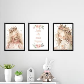 Kit 3 Quadros Infantis Princesa - Sonhe Alto 24X18Cm - Vidro