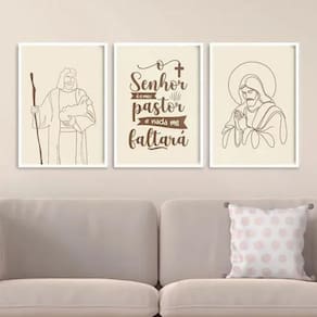 Kit 3 quadros jesus - o senhor é meu pastor 24x18cm Cor: moldura preta Informações do produto tire todas as suas dúvidas no descritivo abaixo: decoração para quarto, sala, cozinha, escritório, área gourmet e muito mais. Chega de paredes vazias medidas - cada peça tem 24x18cm a5 . Material do papel - papel fotográfico brilhante de altíssima resolução acabamento - todos os quadros são acompanhados de uma película de acetato para proteção da imagem. - os quadros são embalados de forma segura com plástico bolha com camada dupla de acordo com o tamanho dos quadros. Garantia - garantia de 3 meses. Meu quadro chegou. Como posso fixá-lo Você precisa apenas de um martelo e um prego, pois os quadros já vão acompanhados de penduradores. Esta é a forma mais indicada. Caso prefira, você pode utilizar uma fita dupla face neste caso, sugerimos de alta qualidade para evitar que descole e seu quadro caia . Como posso limpar meu quadro A limpeza é feita como um móvel comum da sua casa. Apenas um pano seco ou espanador são suficientes para tal