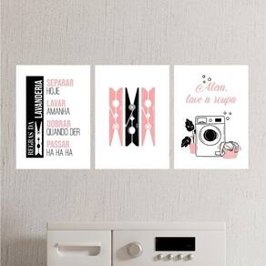 Kit 3 quadros lavanderia alexa lave a roupa 24x18cm