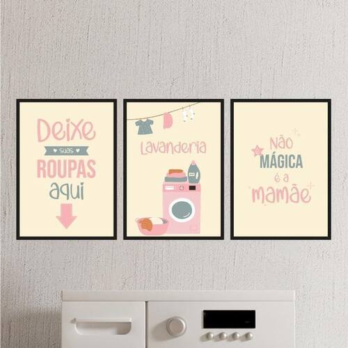 Kit 3 quadros lavanderia mágica 24x18cm - com vidro Moldura: madeira preta Informações do produto Decoração para quarto, sala, cozinha, escritório, área gourmet e muito mais. Chega de paredes vazias Medidas - cada peça tem 24x18cm a5 . Material do papel - papel fotográfico brilhante de altíssima resolução Acabamento - todos os quadros são acompanhados de vidro para proteção da imagem. - moldura em madeira maciça e pendurador . - os quadros são embalados de forma segura com plástico bolha com camada dupla de acordo com o tamanho dos quadros. - de 3 meses. Meu quadro chegou. Como posso fixá-lo Você precisa apenas de um martelo e um prego, pois os quadros já vão acompanhados de penduradores. Esta é a forma mais indicada. Como posso limpar meu quadro A limpeza é feita como um móvel comum da sua casa. Apenas um pano seco ou espanador são suficientes para tal Marca: Não Informado Ean: 7891722875235