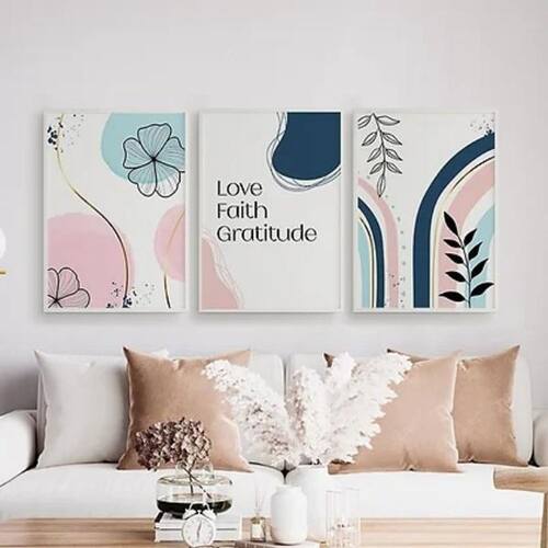 Kit 3 quadros love faith gratitude 24x18cm Moldura: madeira branca