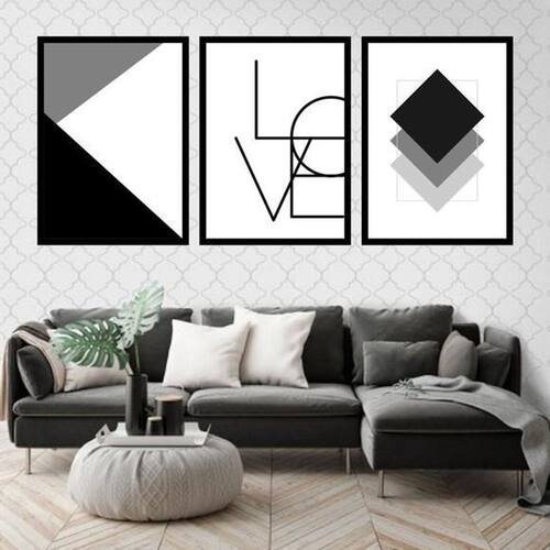 Kit 3 quadros love geométrico monocromático 24x18cm Moldura: madeira preta Informações do produto tire todas as suas dúvidas no descritivo abaixo: decoração para quarto, sala, cozinha, escritório, área gourmet e muito mais. Chega de paredes vazias medidas - cada peça tem 24x18cm a5 . Material do papel - papel fotográfico brilhante de altíssima resolução acabamento - todos os quadros são acompanhados de uma película de acetato para proteção da imagem. - moldura em madeira maciça na cor branca e pendurador móvel que pode ser retirado facilmente caso deseje fixar com fita dupla face. - os quadros são embalados de forma segura com plástico bolha com camada dupla de acordo com o tamanho dos quadros. - de 3 meses prazo de envio pedimos 24 horas úteis no máximo para enviar seu pedido após o envio, segue os prazos normais dos correios, cerca de 7 exceto para norte e nordeste, que pode ser de até 14 . Em diversas cidades, este prazo normalmente é reduzido, mas depende do prazo dos correios. Meu quadro chegou. Como posso fixá-lo Você precisa apenas de um martelo e um prego, pois os quadros já vão acompanhados de penduradores. Esta é a forma mais indicada. Caso prefira, você pode utilizar uma fita dupla face neste caso, sugerimos de alta qualidade para evitar que descole e seu quadro caia . Como posso limpar meu quadro A limpeza é feita como um móvel comum da sua casa. Apenas um pano seco ou espanador são suficientes para tal
