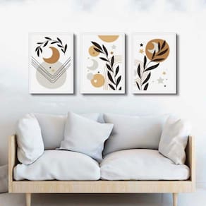 Kit 3 quadros luas e estrelas boho 45x34cm Cor: moldura branca Informações do produto tire todas as suas dúvidas no descritivo abaixo: decoração para quarto, sala, cozinha, escritório, área gourmet e muito mais. Chega de paredes vazias. Medidas - cada peça tem 45x34cm a3 . Material do papel - papel fotográfico brilhante de altíssima resolução acabamento - todos os quadros são acompanhados de uma película de acetato para proteção da imagem. - os quadros são embalados de forma segura com plástico bolha com camada dupla de acordo com o tamanho dos quadros. Garantia - garantia de 3 meses. Meu quadro chegou. Como posso fixá-lo Você precisa apenas de um martelo e um prego, pois os quadros já vão acompanhados de penduradores. Esta é a forma mais indicada. Caso prefira, você pode utilizar uma fita dupla face neste caso, sugerimos de alta qualidade para evitar que descole e seu quadro caia . Como posso limpar meu quadro A limpeza é feita como um móvel comum da sua casa. Apenas um pano seco ou espanador são suficientes para tal