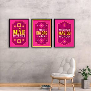 Kit 3 quadros mãe eu te amo 24x18cm Moldura: madeira preta Informações do produto tire todas as suas dúvidas no descritivo abaixo: decoração para quarto, sala, cozinha, escritório, área gourmet e muito mais. Chega de paredes vazias medidas - cada peça tem 24x18cm a5 . Material do papel - papel fotográfico brilhante de altíssima resolução acabamento - todos os quadros são acompanhados de uma película de acetato para proteção da imagem. - moldura em madeira maciça na cor branca e pendurador móvel que pode ser retirado facilmente caso deseje fixar com fita dupla face. - os quadros são embalados de forma segura com plástico bolha com camada dupla de acordo com o tamanho dos quadros. - de 3 meses prazo de envio pedimos 24 horas úteis no máximo para enviar seu pedido após o envio, segue os prazos normais dos correios, cerca de 7 dias úteis exceto para norte e nordeste, que pode ser de até 14 dias úteis. Em diversas cidades, este prazo normalmente é reduzido, mas depende do prazo dos correios. Meu quadro chegou. Como posso fixá-lo Você precisa apenas de um martelo e um prego, pois os quadros já vão acompanhados de penduradores. Esta é a forma mais indicada. Caso prefira, você pode utilizar uma fita dupla face neste caso, sugerimos de alta qualidade para evitar que descole e seu quadro caia . Como posso limpar meu quadro A limpeza é feita como um móvel comum da sua casa. Apenas um pano seco ou espanador são suficientes para tal