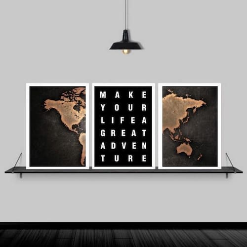 Kit 3 quadros mapa adventure life 45x34cm Moldura: madeira branca Informações do produto Decoração para quarto, sala, cozinha, escritório, área gourmet e muito mais. Chega de paredes vazias Medidas - cada peça tem 45x34cm a3 . Material do papel - papel fotográfico brilhante de altíssima resolução Acabamento - todos os quadros são acompanhados de uma película de acetato para proteção da imagem. - Os quadros são embalados de forma segura com plástico bolha com camada dupla de acordo com o tamanho dos quadros. - de 3 meses. Meu quadro chegou. Como posso fixá-lo Você precisa apenas de um martelo e um prego, pois os quadros já vão acompanhados de penduradores. Esta é a forma mais indicada. Caso prefira, você pode utilizar uma fita dupla face neste caso, sugerimos de alta qualidade para evitar que descole e seu quadro caia . Como posso limpar meu quadro A limpeza é feita como um móvel comum da sua casa. Apenas um pano seco ou espanador são suficientes para tal Marca: Não Informado