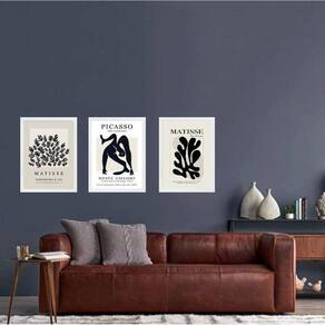 Kit 3 quadros matisse picasso preto e nude 45x34cm Moldura: madeira branca Informações do produto tire todas as suas dúvidas no descritivo abaixo: decoração para quarto, sala, cozinha, escritório, área gourmet e muito mais. Chega de paredes vazias. Medidas - cada peça tem 45x34cm a3 . Material do papel - papel fotográfico brilhante de altíssima resolução acabamento - todos os quadros são acompanhados de uma película de acetato para proteção da imagem. - os quadros são embalados de forma segura com plástico bolha com camada dupla de acordo com o tamanho dos quadros. Garantia - garantia de 3 meses. Meu quadro chegou. Como posso fixá-lo Você precisa apenas de um martelo e um prego, pois os quadros já vão acompanhados de penduradores. Esta é a forma mais indicada. Caso prefira, você pode utilizar uma fita dupla face neste caso, sugerimos de alta qualidade para evitar que descole e seu quadro caia . Como posso limpar meu quadro A limpeza é feita como um móvel comum da sua casa. Apenas um pano seco ou espanador são suficientes para tal