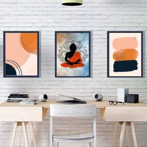 Kit 3 quadros meditação abstrato 33x24cm Moldura: madeira preta Informações do produto tire todas as suas dúvidas no descritivo abaixo: decoração para quarto, sala, cozinha, escritório, área gourmet e muito mais. Chega de paredes vazias medidas - cada peça tem 33x24cm a4 . Material do papel - papel fotográfico brilhante de altíssima resolução acabamento - todos os quadros são acompanhados de uma película de acetato para proteção da imagem. - os quadros são embalados de forma segura com plástico bolha com camada dupla de acordo com o tamanho dos quadros. Garantia - garantia de 3 meses. Meu quadro chegou. Como posso fixá-lo Você precisa apenas de um martelo e um prego, pois os quadros já vão acompanhados de penduradores. Esta é a forma mais indicada. Caso prefira, você pode utilizar uma fita dupla face neste caso, sugerimos de alta qualidade para evitar que descole e seu quadro caia . Como posso limpar meu quadro A limpeza é feita como um móvel comum da sua casa. Apenas um pano seco ou espanador são suficientes para tal