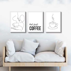 Kit 3 Quadros Minimalistas Café- But First Coffee 24X18Cm