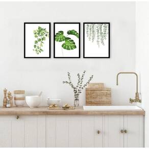 Kit 3 quadros minimalistas plantas 33x24cm - com vidro Cor: moldura branca Informações do produto tire todas as suas dúvidas no descritivo abaixo: decoração para quarto, sala, cozinha, escritório, área gourmet e muito mais. Chega de paredes vazias medidas - cada peça tem 33x24cm a4 . Material do papel - papel fotográfico brilhante de altíssima resolução acabamento - todos os quadros são acompanhados de vidro para proteção da imagem. - moldura em madeira maciça na cor preta ou branca conforme produto escolhido e pendurador . - os quadros são embalados de forma segura com plástico bolha com camada dupla de acordo com o tamanho dos quadros. Garantia - garantia de 3 meses. Meu quadro chegou. Como posso fixá-lo Você precisa apenas de um martelo e um prego, pois os quadros já vão acompanhados de penduradores. Esta é a forma mais indicada. Como posso limpar meu quadro A limpeza é feita como um móvel comum da sua casa. Apenas um pano seco ou espanador são suficientes para tal