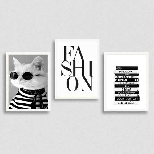 Kit 3 quadros moda fashion gatinho 45x34cm - com vidro Moldura: madeira branca Informações do produto Decoração para quarto, sala, cozinha, escritório, área gourmet e muito mais. Chega de paredes vazias Medidas - cada peça tem 45x34cm a3 . Material do papel - papel fotográfico brilhante de altíssima resolução Acabamento - todos os quadros são acompanhados de vidro para proteção da imagem. - moldura em madeira maciça e pendurador . - os quadros são embalados de forma segura com plástico bolha com camada dupla de acordo com o tamanho dos quadros. - de 3 meses. Meu quadro chegou. Como posso fixá-lo Você precisa apenas de um martelo e um prego, pois os quadros já vão acompanhados de penduradores. Esta é a forma mais indicada. Caso prefira, você pode utilizar uma fita dupla face neste caso, sugerimos de alta qualidade para evitar que descole e seu quadro caia . Como posso limpar meu quadro A limpeza é feita como um móvel comum da sua casa. Apenas um pano seco ou espanador são suficientes para tal Marca: Não Informado