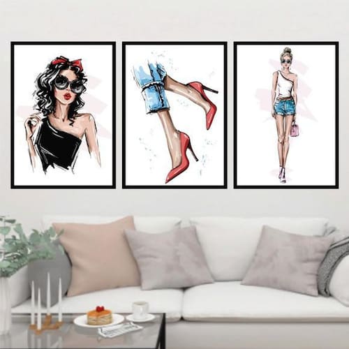 Kit 3 quadros moda roupas e sapatos 24x18cm