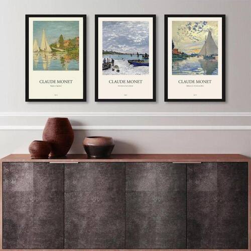 Kit 3 quadros monet - regatas 24x18cm - com vidro Moldura: madeira branca Informações do produto tire todas as suas dúvidas no descritivo abaixo: decoração para quarto, sala, cozinha, escritório, área gourmet e muito mais. Chega de paredes vazias medidas - cada peça tem 24x18cm a5 . Material do papel - papel fotográfico brilhante de altíssima resolução acabamento - todos os quadros são acompanhados de vidro para proteção da imagem. - moldura em madeira maciça na cor preta ou branca conforme produto escolhido e pendurador . - os quadros são embalados de forma segura com plástico bolha com camada dupla de acordo com o tamanho dos quadros. Garantia - garantia de 3 meses. Meu quadro chegou. Como posso fixá-lo Você precisa apenas de um martelo e um prego, pois os quadros já vão acompanhados de penduradores. Esta é a forma mais indicada. Como posso limpar meu quadro A limpeza é feita como um móvel comum da sua casa. Apenas um pano seco ou espanador são suficientes para tal