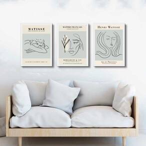 Kit 3 quadros mulheres matisse - azul claro 24x18cm Moldura: madeira branca Informações do produto tire todas as suas dúvidas no descritivo abaixo: decoração para quarto, sala, cozinha, escritório, área gourmet e muito mais. Chega de paredes vazias medidas - cada peça tem 24x18cm a5 . Material do papel - papel fotográfico brilhante de altíssima resolução acabamento - todos os quadros são acompanhados de uma película de acetato para proteção da imagem. - os quadros são embalados de forma segura com plástico bolha com camada dupla de acordo com o tamanho dos quadros. Garantia - garantia de 3 meses. Meu quadro chegou. Como posso fixá-lo Você precisa apenas de um martelo e um prego, pois os quadros já vão acompanhados de penduradores. Esta é a forma mais indicada. Caso prefira, você pode utilizar uma fita dupla face neste caso, sugerimos de alta qualidade para evitar que descole e seu quadro caia . Como posso limpar meu quadro A limpeza é feita como um móvel comum da sua casa. Apenas um pano seco ou espanador são suficientes para tal