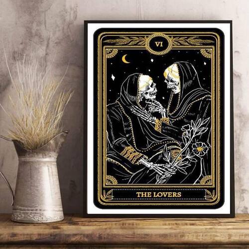 Quadro decorativo carta tarot the lovers 24x18cm Moldura: madeira preta Informações do produto tire todas as suas dúvidas no descritivo abaixo: decoração para quarto, sala, cozinha, escritório, área gourmet e muito mais. Chega de paredes vazias medidas - cada peça tem 24x18cm a5 . Material do papel - papel fotográfico brilhante de altíssima resolução acabamento - todos os quadros são acompanhados de uma película de acetato para proteção da imagem. - moldura em madeira maciça na cor branca e pendurador móvel que pode ser retirado facilmente caso deseje fixar com fita dupla face. - os quadros são embalados de forma segura com plástico bolha com camada dupla de acordo com o tamanho dos quadros. Ean: 7892091095521