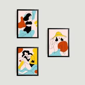 Kit 3 quadros mulheres vamos a la playa 33x24cm - com vidro Moldura: madeira preta Informações do produto Decoração para quarto, sala, cozinha, escritório, área gourmet e muito mais. Chega de paredes vazias medidas - cada peça tem 33x24cm a4 . Material do papel - papel fotográfico brilhante de altíssima resolução Acabamento - todos os quadros são acompanhados de vidro para proteção da imagem. - Moldura em madeira maciça na cor preta e pendurador . - Os quadros são embalados de forma segura com plástico bolha com camada dupla de acordo com o tamanho dos quadros. - de 3 meses. Meu quadro chegou. Como posso fixá-lo Você precisa apenas de um martelo e um prego, pois os quadros já vão acompanhados de penduradores. Esta é a forma mais indicada. Como posso limpar meu quadro A limpeza é feita como um móvel comum da sua casa. Apenas um pano seco ou espanador são suficientes para tal Marca: Não Informado