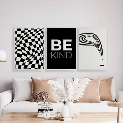 Kit 3 quadros optical art- be kind 24x18cm - com vidro Moldura: madeira preta