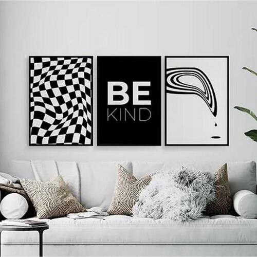 Kit 3 Quadros Optical Art- Be Kind 33X24Cm Preta