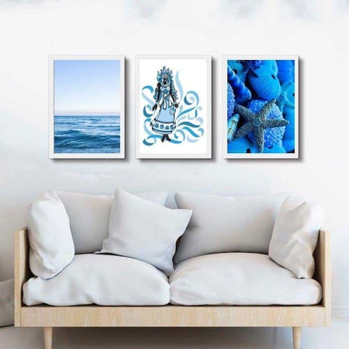 Kit 3 quadros orixá iemanjá azul 45x34cm - com vidro Moldura: madeira preta Informações do produto tire todas as suas dúvidas no descritivo abaixo: decoração para quarto, sala, cozinha, escritório, área gourmet e muito mais. Chega de paredes vazias medidas - cada peça tem 45x34cm a3 . Material do papel - papel fotográfico brilhante de altíssima resolução acabamento - todos os quadros são acompanhados de vidro para proteção da imagem. - moldura em madeira maciça na cor preta ou branca conforme produto escolhido e pendurador . - os quadros são embalados de forma segura com plástico bolha com camada dupla de acordo com o tamanho dos quadros. Garantia - garantia de 3 meses. Meu quadro chegou. Como posso fixá-lo Você precisa apenas de um martelo e um prego, pois os quadros já vão acompanhados de penduradores. Esta é a forma mais indicada. Como posso limpar meu quadro A limpeza é feita como um móvel comum da sua casa. Apenas um pano seco ou espanador são suficientes para tal