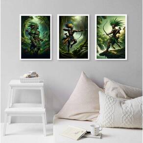 Kit 3 quadros oxossi guerreiro - candomblé 24x18cm Moldura: madeira preta Informações do produto tire todas as suas dúvidas no descritivo abaixo: decoração para quarto, sala, cozinha, escritório, área gourmet e muito mais. Chega de paredes vazias medidas - cada peça tem 24x18cm a5 . Material do papel - papel fotográfico brilhante de altíssima resolução acabamento - todos os quadros são acompanhados de uma película de acetato para proteção da imagem. - os quadros são embalados de forma segura com plástico bolha com camada dupla de acordo com o tamanho dos quadros. Garantia - garantia de 3 meses. Meu quadro chegou. Como posso fixá-lo Você precisa apenas de um martelo e um prego, pois os quadros já vão acompanhados de penduradores. Esta é a forma mais indicada. Caso prefira, você pode utilizar uma fita dupla face neste caso, sugerimos de alta qualidade para evitar que descole e seu quadro caia . Como posso limpar meu quadro A limpeza é feita como um móvel comum da sua casa. Apenas um pano seco ou espanador são suficientes para tal