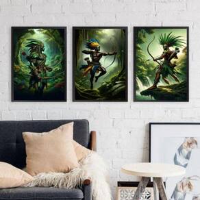 Kit 3 quadros oxossi guerreiro - candomblé 33x24cm Moldura: madeira preta Informações do produto tire todas as suas dúvidas no descritivo abaixo: decoração para quarto, sala, cozinha, escritório, área gourmet e muito mais. Chega de paredes vazias medidas - cada peça tem 33x24cm a4 . Material do papel - papel fotográfico brilhante de altíssima resolução acabamento - todos os quadros são acompanhados de uma película de acetato para proteção da imagem. - os quadros são embalados de forma segura com plástico bolha com camada dupla de acordo com o tamanho dos quadros. Garantia - garantia de 3 meses. Meu quadro chegou. Como posso fixá-lo Você precisa apenas de um martelo e um prego, pois os quadros já vão acompanhados de penduradores. Esta é a forma mais indicada. Caso prefira, você pode utilizar uma fita dupla face neste caso, sugerimos de alta qualidade para evitar que descole e seu quadro caia . Como posso limpar meu quadro A limpeza é feita como um móvel comum da sua casa. Apenas um pano seco ou espanador são suficientes para tal