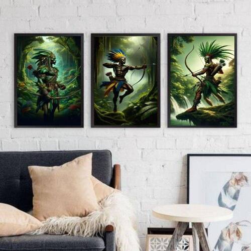 Kit 3 quadros oxossi guerreiro - candomblé 45x34cm - com vidro Moldura: madeira preta Informações do produto tire todas as suas dúvidas no descritivo abaixo: decoração para quarto, sala, cozinha, escritório, área gourmet e muito mais. Chega de paredes vazias medidas - cada peça tem 45x34cm a3 . Material do papel - papel fotográfico brilhante de altíssima resolução acabamento - todos os quadros são acompanhados de vidro para proteção da imagem. - moldura em madeira maciça na cor preta ou branca conforme produto escolhido e pendurador . - os quadros são embalados de forma segura com plástico bolha com camada dupla de acordo com o tamanho dos quadros. Garantia - garantia de 3 meses. Meu quadro chegou. Como posso fixá-lo Você precisa apenas de um martelo e um prego, pois os quadros já vão acompanhados de penduradores. Esta é a forma mais indicada. Como posso limpar meu quadro A limpeza é feita como um móvel comum da sua casa. Apenas um pano seco ou espanador são suficientes para tal