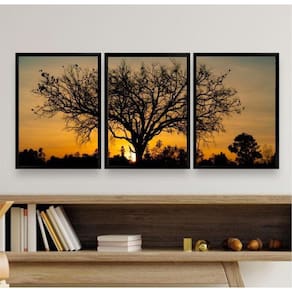 Garanta já o seu Kit 3 Quadros Paisagem Árvore Por Do Sol e transforme a decoração do seu ambiente! Ean: 7896269282324