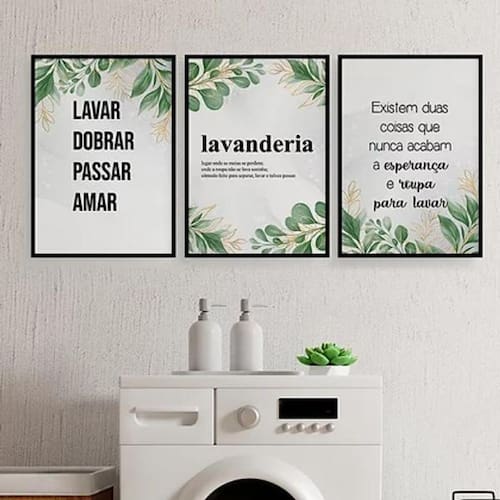 Kit 3 quadros para lavanderia folhas 24x18cm Moldura: madeira preta Informações do produto Decoração para quarto, sala, cozinha, escritório, área gourmet e muito mais. Chega de paredes vazias Medidas - cada peça tem 24x18cm a5 . Material do papel - papel fotográfico brilhante de altíssima resolução Acabamento - todos os quadros são acompanhados de uma película de acetato para proteção da imagem. - os quadros são embalados de forma segura com plástico bolha com camada dupla de acordo com o tamanho dos quadros. - de 3 meses. Meu quadro chegou. Como posso fixá-lo Você precisa apenas de um martelo e um prego, pois os quadros já vão acompanhados de penduradores. Esta é a forma mais indicada. Como posso limpar meu quadro A limpeza é feita como um móvel comum da sua casa. Apenas um pano seco ou espanador são suficientes para tal