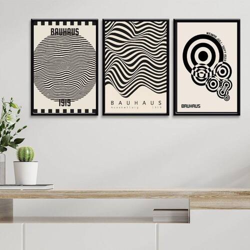 Kit 3 quadros posters bauhaus - preto e branco 24x18cm Moldura: madeira branca Informações do produto tire todas as suas dúvidas no descritivo abaixo: decoração para quarto, sala, cozinha, escritório, área gourmet e muito mais. Chega de paredes vazias medidas - cada peça tem 24x18cm a5 . Material do papel - papel fotográfico brilhante de altíssima resolução acabamento - todos os quadros são acompanhados de uma película de acetato para proteção da imagem. - os quadros são embalados de forma segura com plástico bolha com camada dupla de acordo com o tamanho dos quadros. - de 3 meses. Meu quadro chegou. Como posso fixá-lo Você precisa apenas de um martelo e um prego, pois os quadros já vão acompanhados de penduradores. Esta é a forma mais indicada. Caso prefira, você pode utilizar uma fita dupla face neste caso, sugerimos de alta qualidade para evitar que descole e seu quadro caia . Como posso limpar meu quadro A limpeza é feita como um móvel comum da sua casa. Apenas um pano seco ou espanador são suficientes para tal Marca: Não Informado