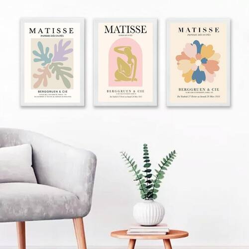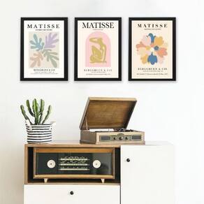Kit 3 quadros posters matisse candy colors 33x24cm - com vidro Moldura: madeira preta Informações do produto tire todas as suas dúvidas no descritivo abaixo: decoração para quarto, sala, cozinha, escritório, área gourmet e muito mais. Chega de paredes vazias medidas - cada peça tem 33x24cm a4 . Material do papel - papel fotográfico brilhante de altíssima resolução acabamento - todos os quadros são acompanhados de vidro para proteção da imagem. - moldura em madeira maciça na cor preta ou branca conforme produto escolhido e pendurador . - os quadros são embalados de forma segura com plástico bolha com camada dupla de acordo com o tamanho dos quadros. Garantia - garantia de 3 meses. Meu quadro chegou. Como posso fixá-lo Você precisa apenas de um martelo e um prego, pois os quadros já vão acompanhados de penduradores. Esta é a forma mais indicada. Como posso limpar meu quadro A limpeza é feita como um móvel comum da sua casa. Apenas um pano seco ou espanador são suficientes para tal