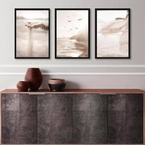 Kit 3 quadros praia bege e marrom- leveza 45x34cm - com vidro Moldura: madeira branca Informações do produto tire todas as suas dúvidas no descritivo abaixo: decoração para quarto, sala, cozinha, escritório, área gourmet e muito mais. Chega de paredes vazias medidas - cada peça tem 45x34cm a3 . Material do papel - papel fotográfico brilhante de altíssima resolução acabamento - todos os quadros são acompanhados de vidro para proteção da imagem. - moldura em madeira maciça na cor preta ou branca conforme produto escolhido e pendurador . - os quadros são embalados de forma segura com plástico bolha com camada dupla de acordo com o tamanho dos quadros. Garantia - garantia de 3 meses. Meu quadro chegou. Como posso fixá-lo Você precisa apenas de um martelo e um prego, pois os quadros já vão acompanhados de penduradores. Esta é a forma mais indicada. Como posso limpar meu quadro A limpeza é feita como um móvel comum da sua casa. Apenas um pano seco ou espanador são suficientes para tal Ean: 7899378123397