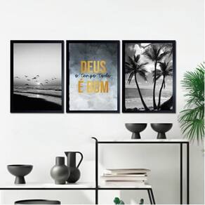 Kit 3 quadros praia deus é bom preto e branco 45x34cm Moldura: madeira branca Informações do produto tire todas as suas dúvidas no descritivo abaixo: decoração para quarto, sala, cozinha, escritório, área gourmet e muito mais. Chega de paredes vazias. Medidas - cada peça tem 45x34cm a3 . Material do papel - papel fotográfico brilhante de altíssima resolução acabamento - todos os quadros são acompanhados de uma película de acetato para proteção da imagem. - os quadros são embalados de forma segura com plástico bolha com camada dupla de acordo com o tamanho dos quadros. - de 3 meses. Meu quadro chegou. Como posso fixá-lo Você precisa apenas de um martelo e um prego, pois os quadros já vão acompanhados de penduradores. Esta é a forma mais indicada. Caso prefira, você pode utilizar uma fita dupla face neste caso, sugerimos de alta qualidade para evitar que descole e seu quadro caia . Como posso limpar meu quadro A limpeza é feita como um móvel comum da sua casa. Apenas um pano seco ou espanador são suficientes para tal Marca: Não Informado